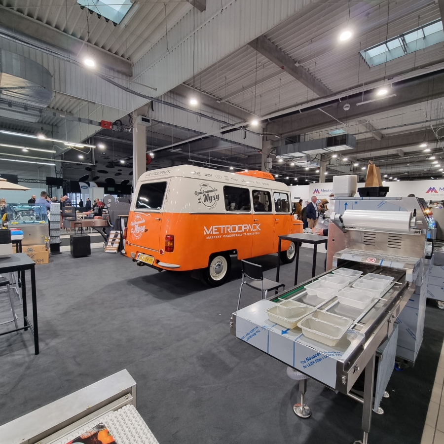Na naszym stoisku odwiedzający poznali szeroką ofertę maszyn pakujących - zarówno manualne, półautomatyczne jak i w pełni zautomatyzowane, pakowarki próżniowe oraz kontenery do transportu żywności. Mogli poznać także nowości, które w ostatnim czasie pojawiły się w naszej ofercie. Warto w tym miejscu wspomnieć m.in. o nagrodzonych opakowaniach do zgrzewu reNew METROOPACK CPET, które można poddawać recyklingowi nieskończoną ilość razy. Każdy z odwiedzających mógł także zajrzeć do środka naszego pomarańczowego motoryzacyjnego klasyka - samochodu marki Nysa, który śmiało prezentował swoje wdzięki wśród wielu naszych maszyn i opakowań.